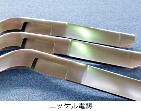電気ニッケルめっきは、耐食性に優れ、硬さ、柔軟性など物理的性質も良好であり、各種の素地に対して直接密着性の良いめっきができます。